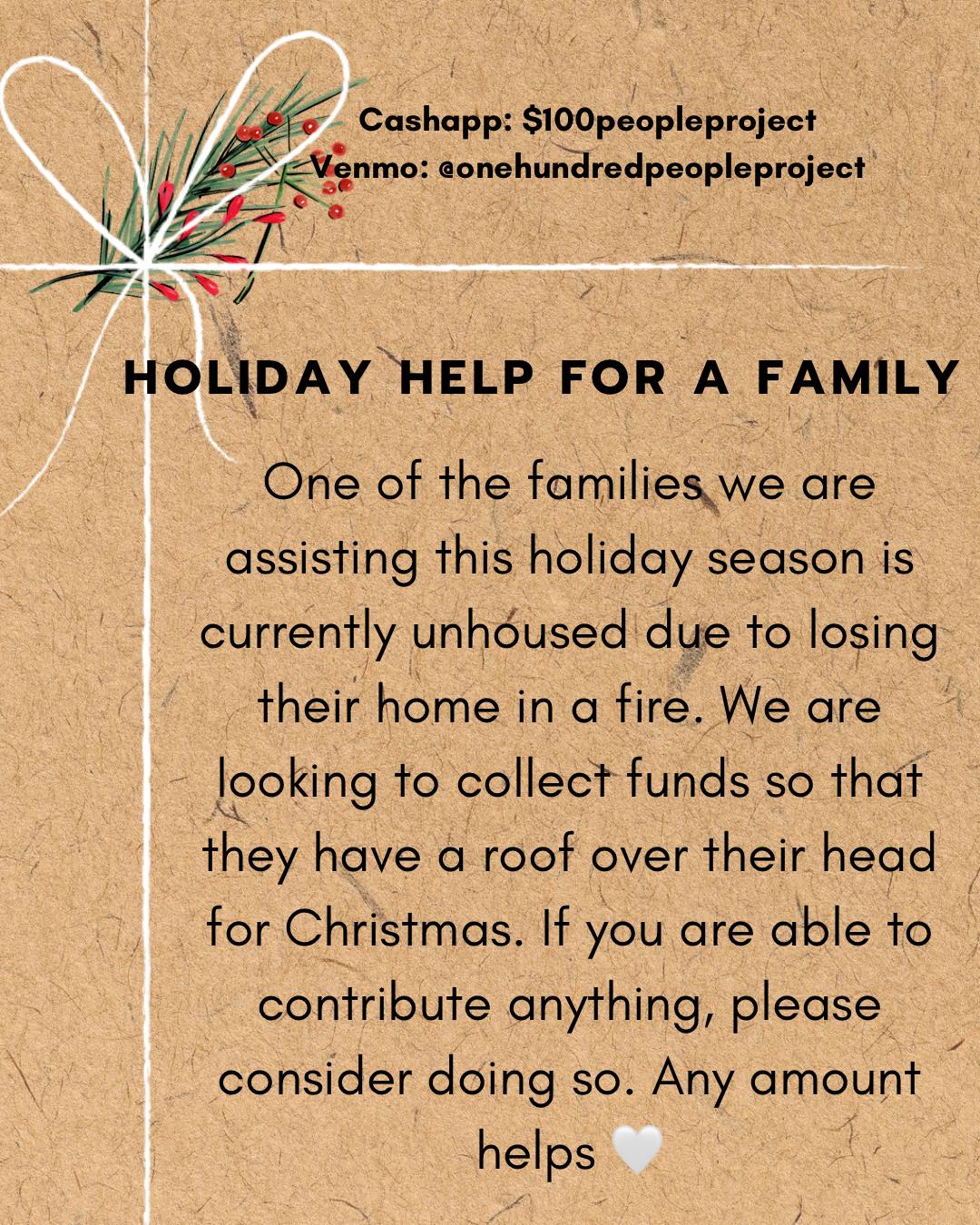 UPDATE 12/20: We posted that one of the families selected for HoHoHope needed a roof over their head for a few days and we were able to make sure they wake up on Christmas morning to just that ❤️ Thank you to everyone who donated!